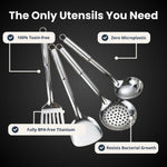 Nie. Bez toksyn. Nasze patelnie są całkowicie wolne od powłok mikroplastiku trwałych chemikaliów i ukrytych obróbek. Tylko 100% czysty tytan certyfikowany do kontaktu z żywnością stosowany również w medycynie.